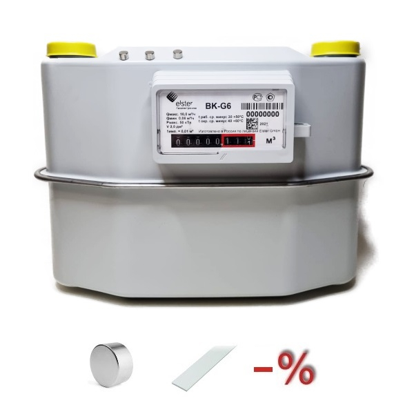 Газовый счетчик с магнитом в комплекте BK-G4T с модифицированным механизмом предназначен для экономии на коммунальных платежах. Учетный узел переделан с тем учетом, чтобы останавливаться под воздействием магнитного поля. Чтобы остановить учет потребляемого газа, просто закрепите на корпусе неодимовый магнит.